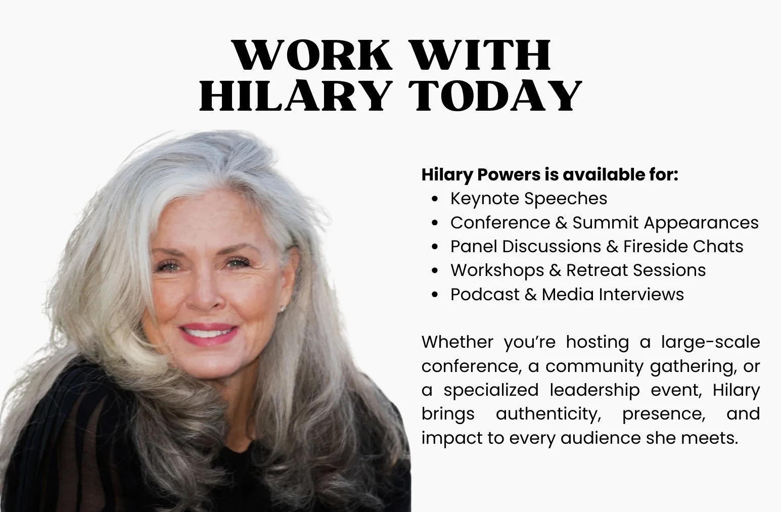 Hilary is available for Speaking in person Motivational Speaker or Keynote Speaker as well as available for one-on-one coaching.